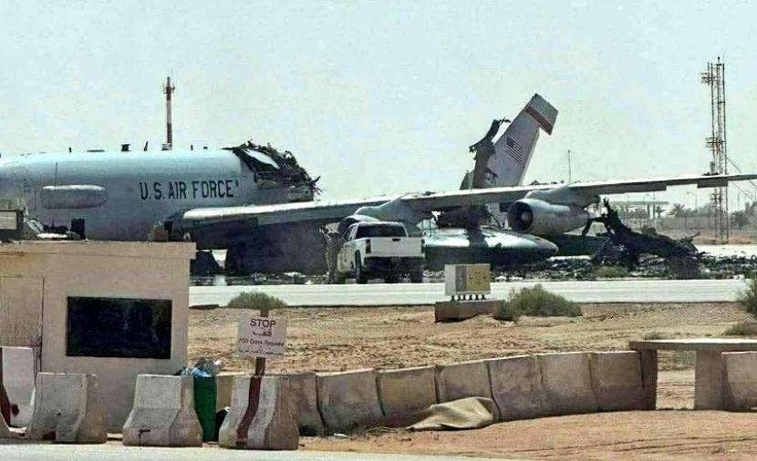 تداولت حسابات على منصات التواصل الاجتماعي صوراً قيل إنها تُظهر طائرة مراقبة وتحكم جوي من طراز "إي-3 سينتري أواكس" بعد تدميرها في قاعدة الأمير سلطان الجوية في السعودية، عقب ضربة إيرانية استهدفت القاعدة